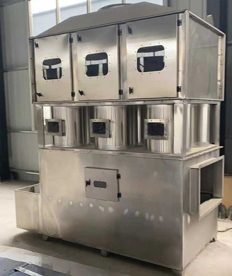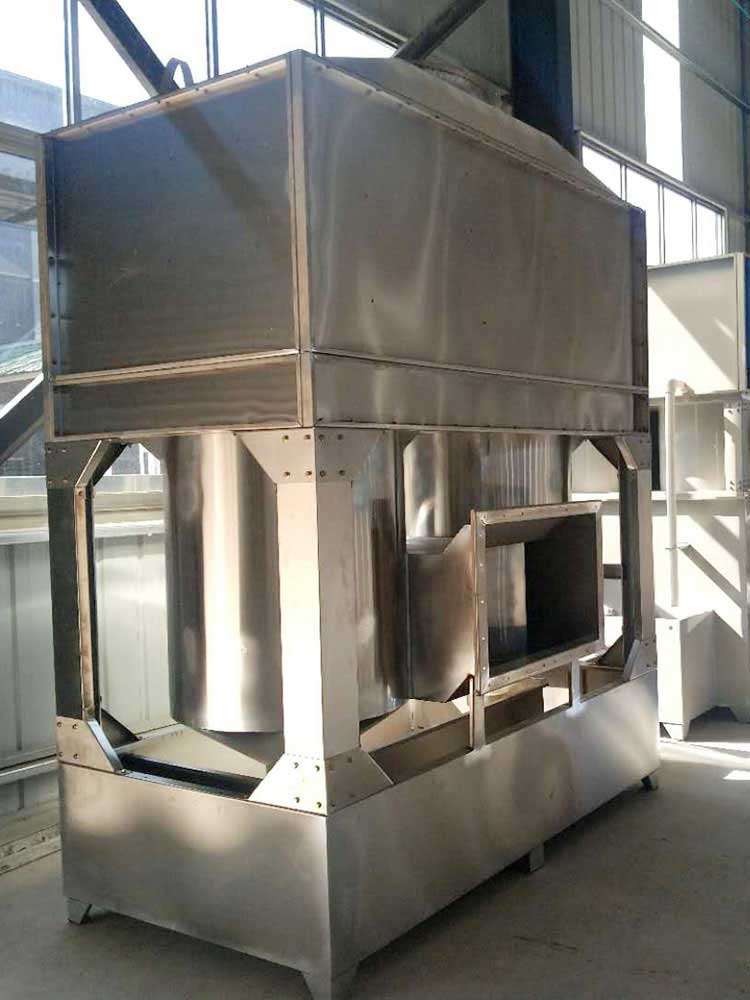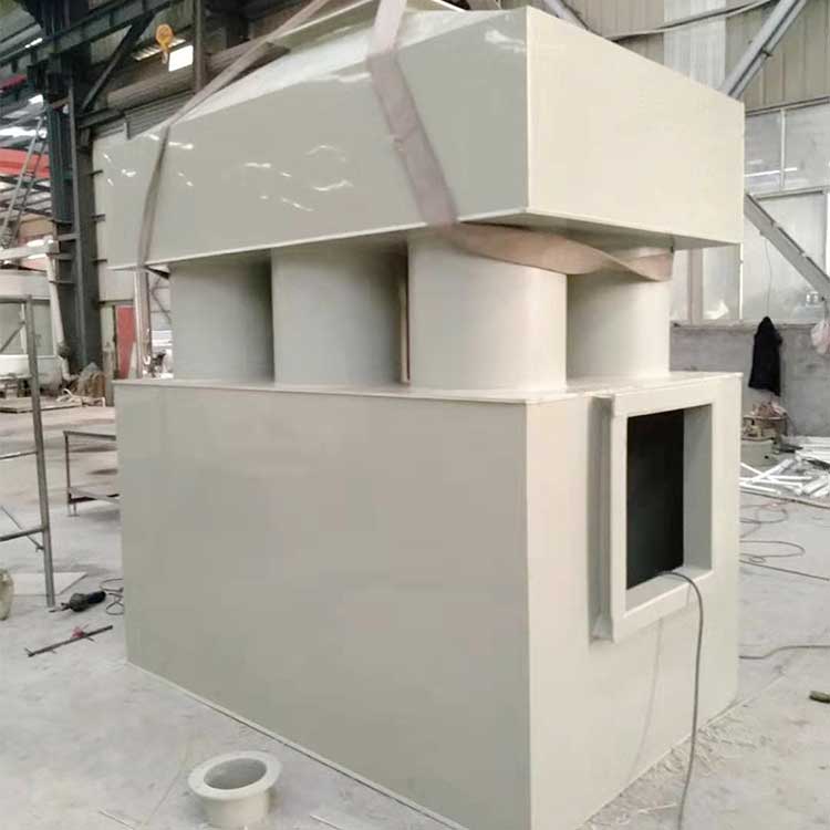 1、方形旋流塔又叫方型旋流塔、旋流净化塔、旋流板喷淋塔等名称。目前在除烟除尘、脱硫领域、喷漆房废气治理的应用越来越多。它有净化效率高、防堵性能强、防腐耐用寿命长的优点。方形净化塔主要由主旋流部分、填料部分、喷淋部分、水循环部分、离心风机组成。