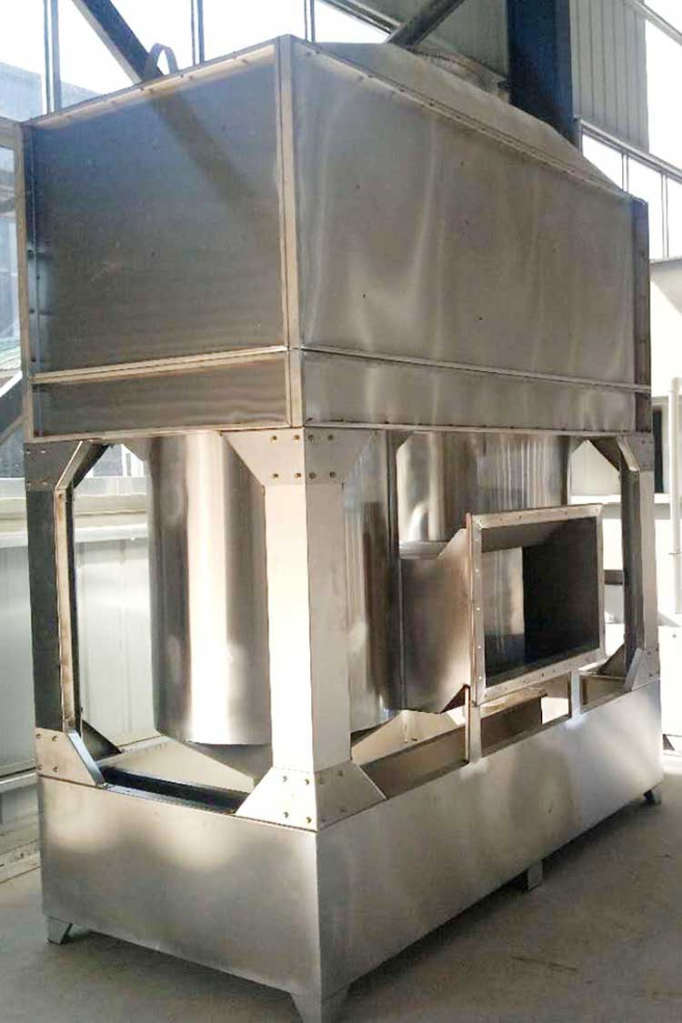 3、2万风量方形旋流喷淋塔尺寸为L2.4*W1.3*H3米,有6个旋流筒。一个水泵,一般使用pp板或201不锈钢制作。