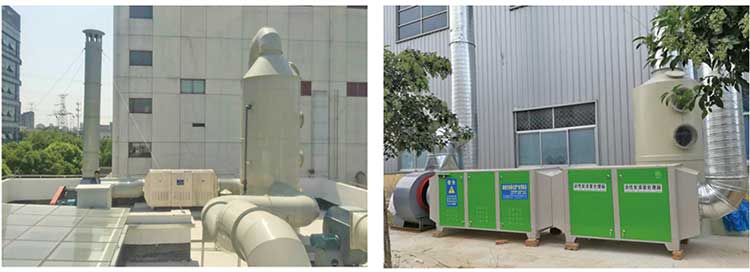 四、废气处理设备安装完成后,有效的去除了喷漆房车间的废气,改善了工作环境,达到了国家环保标准,工程安装图片如下所示。