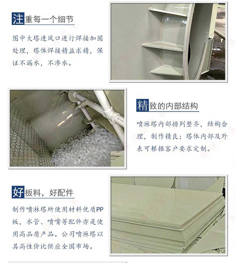 一、喷淋塔因其结构简单,设备运行可靠,操作简单等特点,可应用于多种废气处理的场合,去除废气中有害颗粒效率高。另外喷淋塔在使用中耗水、耗电指标低,经济适用。佑泰环保在漆雾处理设备的选择中,经常使用pp喷漆塔,塔体的选材采用PP板制造、耐老化、外观好。可以将漆雾集中收集处理,除漆雾效率可达85%以上。
